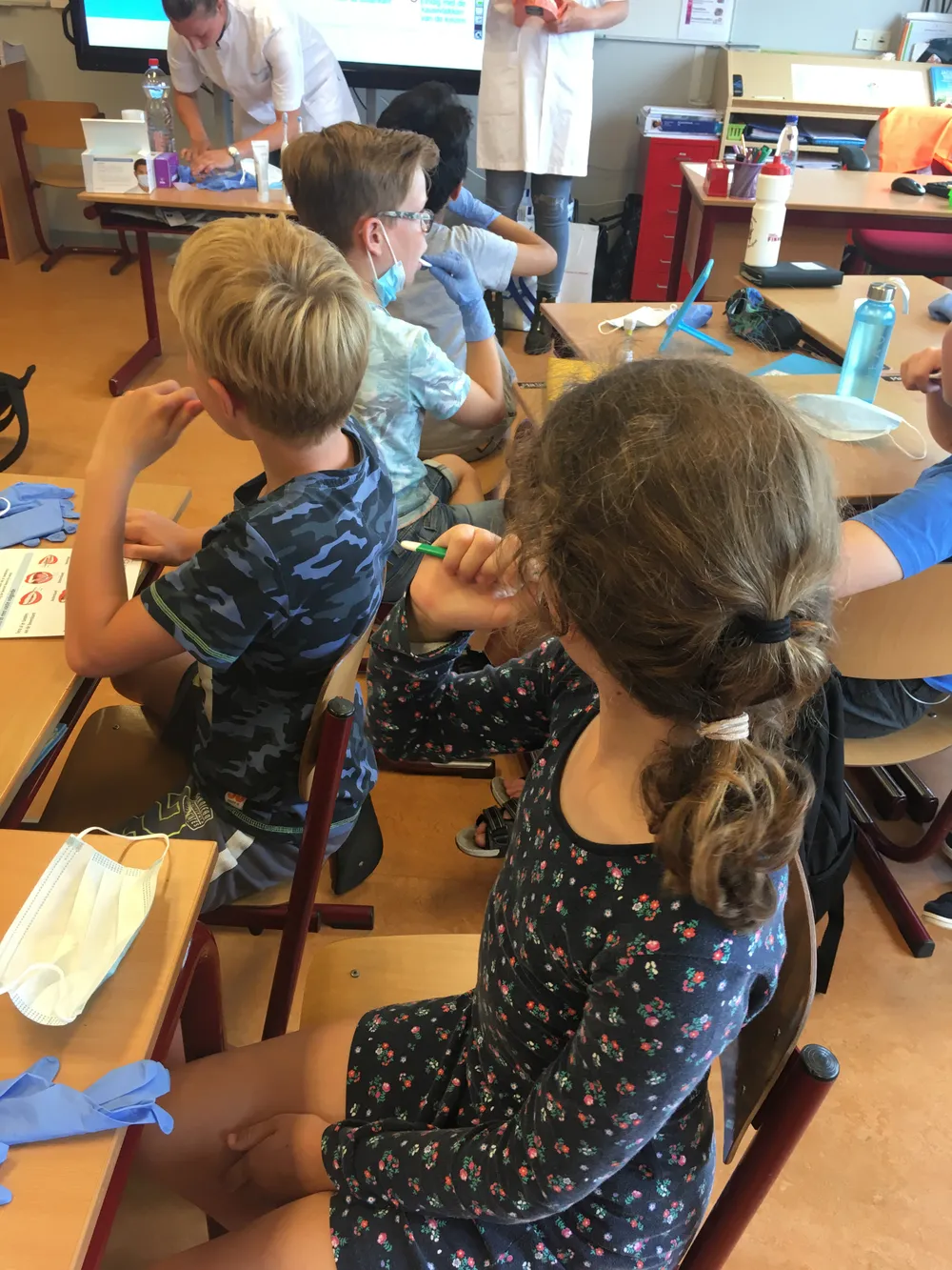 Er werd het een en ander uitgelegd over gaatjes, beugels en natuurlijk het poetsen. Ook werd er na de poetsinstructie een test met plakverklikkers uitgevoerd. De test met de tandplakverklikkers vonden de kinderen van groep 6 geweldig!