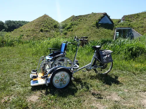 Zonnebloemrolstoelfiets, een ‘offroad’ rolstoel en een speciaal hiervoor geplaatste