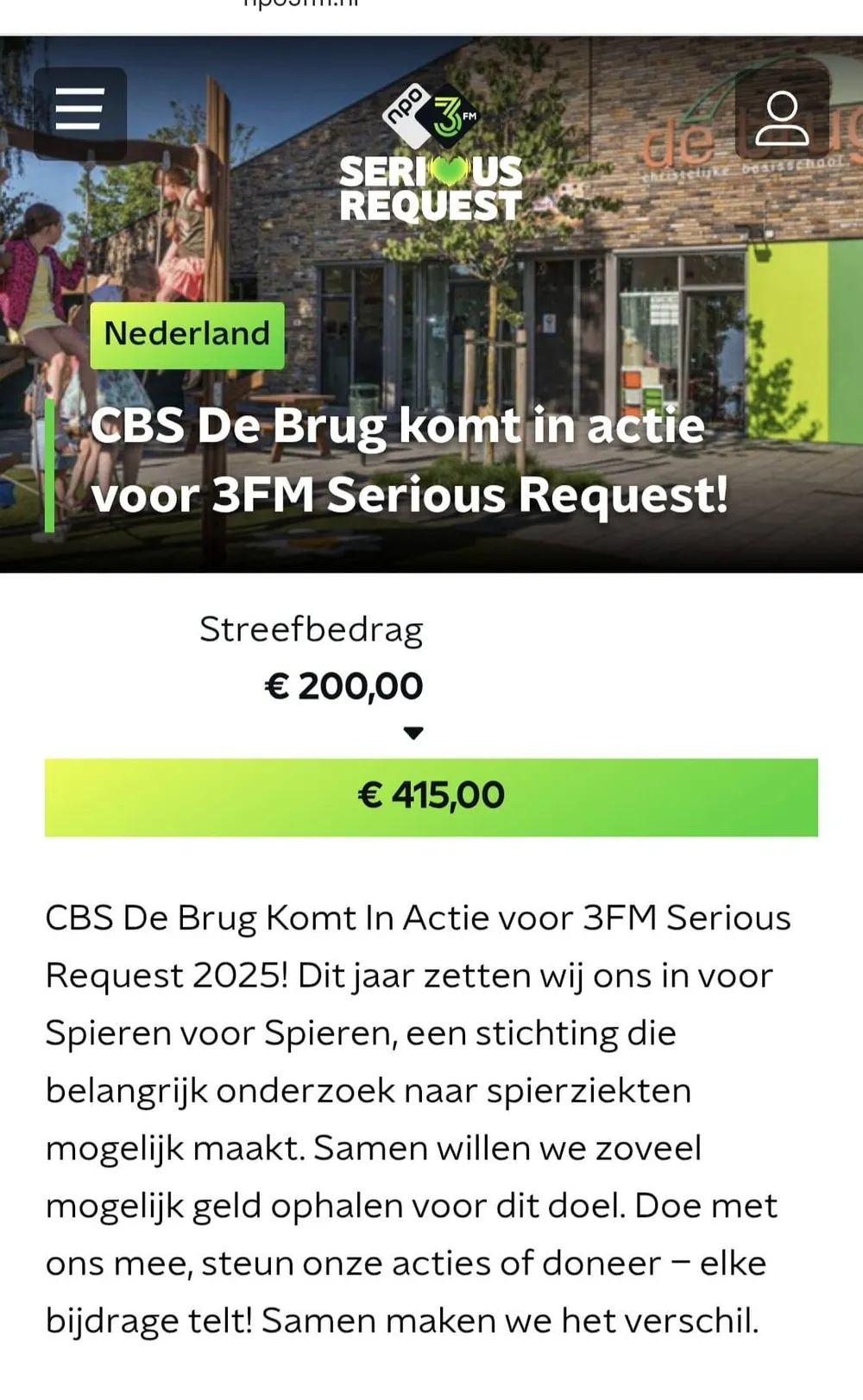 Met deze bijdrage heeft CBS De Brug niet alleen een mooi bedrag opgehaald, maar ook aandacht gevraagd voor kinderen met een spierziekte. Daarmee draagt de school op een tastbare manier bij aan de doelstellingen van Serious Request.
