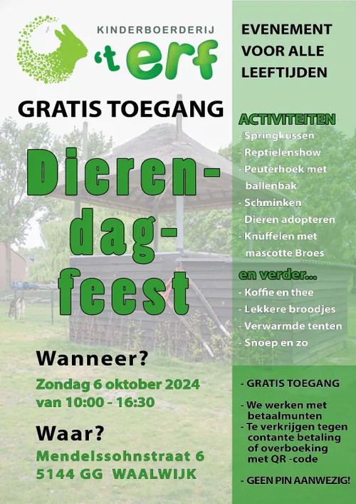 Bij 't Erf zijn ze helemaal klaar voor het dierendagfeest. Komen jullie ook?
