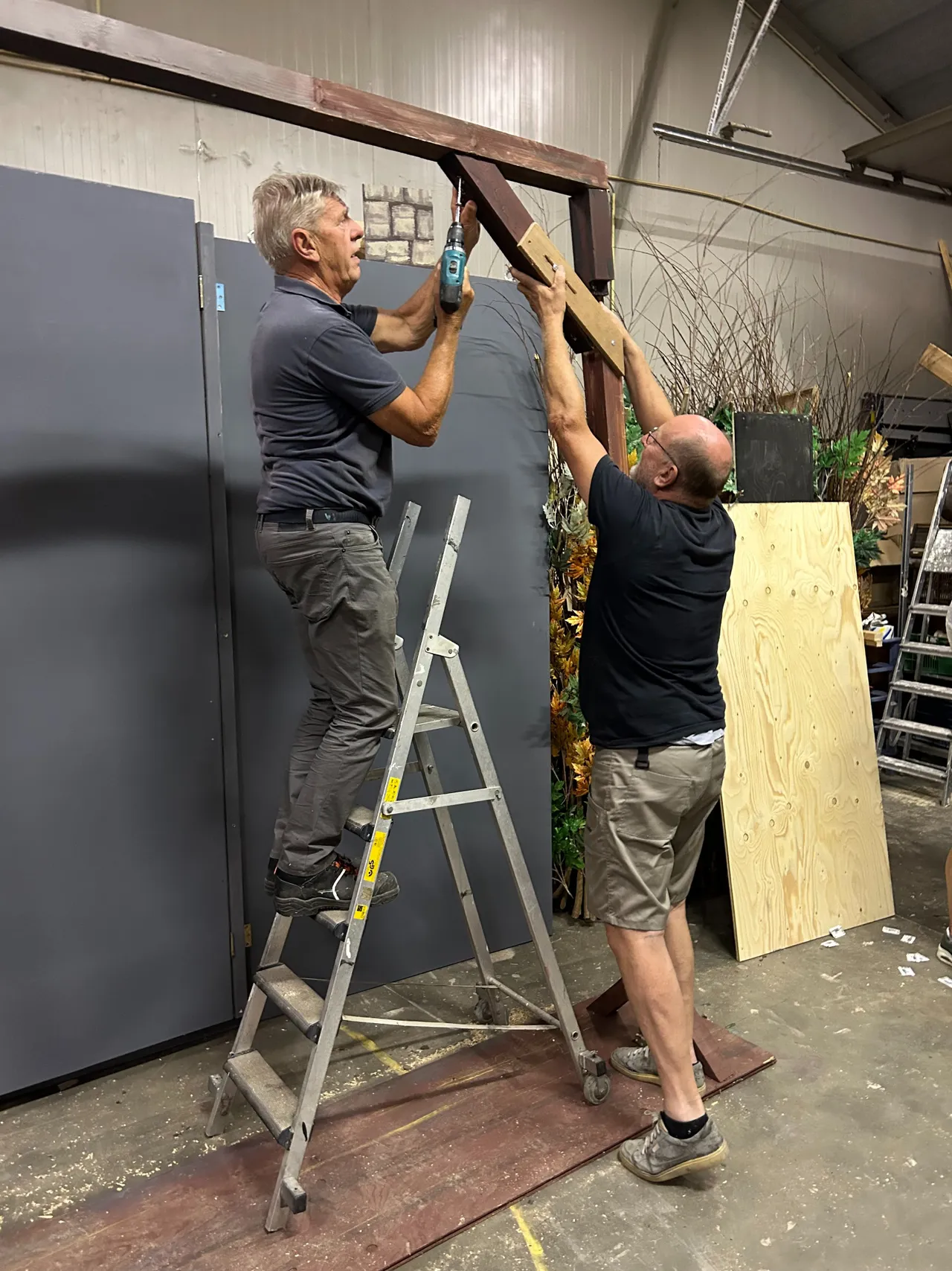 Gelukkig bestaat de decorploeg uit echte vakmensen, iets wat terug te zien is in de degelijkheid van de decorstukken. Veiligheid staat voorop, want je wilt ook de spelers beschermen, aldus de heren.
