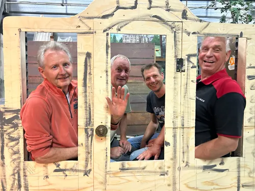 Dat het een hechte club is binnen de decorploeg, is wel duidelijk. Naast het serieuze werk zoals timmeren, zagen en schilderen, gaat er geen avond voorbij zonder een biertje en een goed gesprek. Het blijft immers een hobby, en hobby moet in de eerste plaats gezellig zijn!