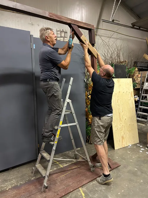 Met nog één week te gaan, wordt er in Kaatsheuvel hard gewerkt door de heren van de decorploeg van Toneelvereniging OOG Waalwijk om alles op tijd af te krijgen. Kosten noch moeite worden gespaard om het decor van het 100-jarig jubileumstuk er fantastisch uit te laten zien.