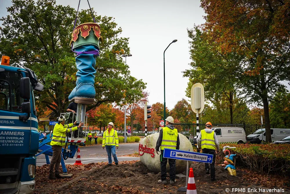 KAATSHEUVEL – Op woensdagmiddag 15 oktober heeft de Efteling een nieuw en opvallend herkenningspunt geplaatst aan de Europalaan, ter hoogte van de splitsing waar bezoekers linksaf het park inrijden en rechtdoor richting het dorp rijden. Op deze plek prijkt nu een reusachtige laars met bovenop het sprookjesfiguurtje Klein Duimpje.