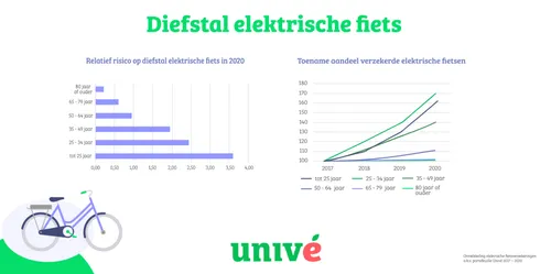 Onderzoek van Univé laat zien hoe het aantal aangiften van diefstal van bij Univé verzekerde elektrische fietsen in 2020 maar liefst 81 procent hoger lag dan drie jaar eerder. Het aantal ‘gewone’ fietsen dat als vermist werd opgegeven in dezelfde periode met 46,9 procent daalde. De coöperatie merkt daarnaast een opvallende trend op ten aanzien van de slachtoffers: waar de fiets vooral bekendstaat om haar populariteit bij ouderen, groeit het aantal jongeren dat een e-bike als gestolen opgeeft het hardst.
