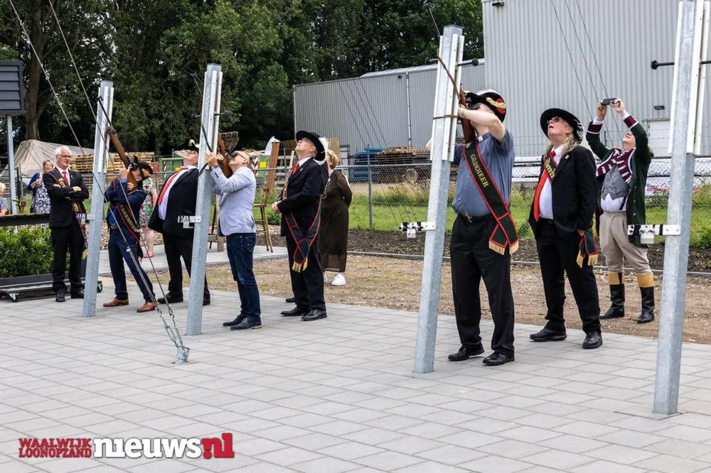 Na toespraken van hoofdman René van Kuijk en burgemeester Kleijngeld zijn de schietbomen en het paviljoen ingezegend door gildeheer pastoor Verbraeken. Vervolgens kon het terrein officieel geopend worden. Door het kapot schieten van ballonnen met confetti door burgemeester Kleijngeld, pastoor Verbraken en wethouder Bakker was de officiële opening een feit. Als dank voor het zijn bijdrage aan het gilde, in zijn functie als beschermheer, heeft burgemeester Kleijngeld als afscheidscadeau een beeldje van een gildebroeder ontvangen.