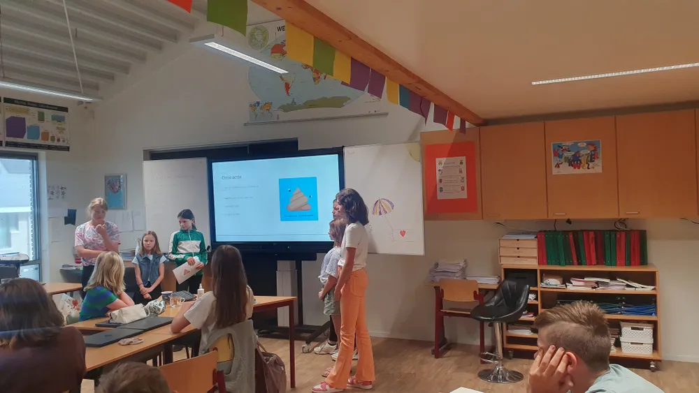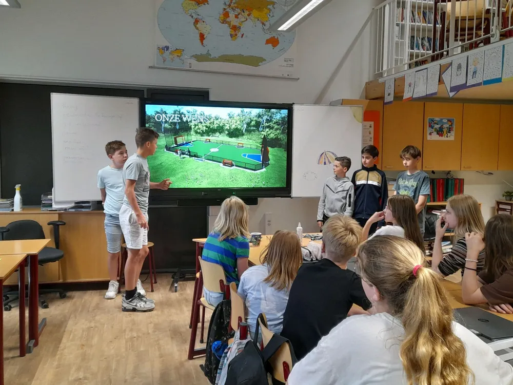 Die afspraak kwam er in mei. Marja Verhagen kwam, samen met wethouder Odabasi, naar school toe om naar de presentaties te luisteren. De klas gaf in vier groepen presentaties over verschillende onderwerpen: een basketbalveld, hondenuitlaatveld, (betere) verlichting in het tunneltje richting het Scharlo en een speeltuin op de Havendijk. De vragen vanuit de gemeente werden goed beantwoord en beargumenteerd. De wethouder en raadslid beloofden de onderwerpen ook echt te bespreken in de gemeenteraad en vandaag kwamen ze terug om de leerlingen te vertellen wat er met hun ideeën zou gebeuren.