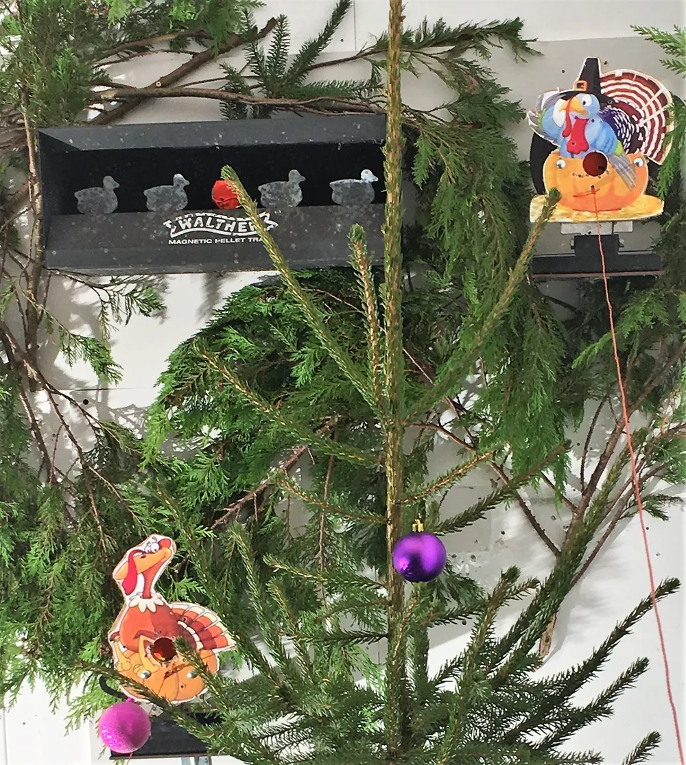 In het paviljoen met 4 luchtgeweerbanen, welke in kerstsfeer zijn ingericht, wordt er door de deelnemers per toerbeurt op linten geschoten. Degene die het lint door midden schiet wint de bij het lint behorende prijs. Hierdoor heeft iedereen evenveel kans om een prijs te winnen.