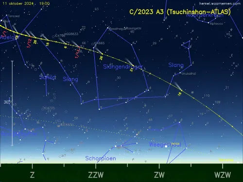 In de tweede helft van oktober is de komeet genaamd C/2023 A3 (Tsuchinshan-ATLAS) aan onze sterrenhemel te zien. Vooral bij een heldere hemel is het mogelijk de komeet met het blote oog te zien.