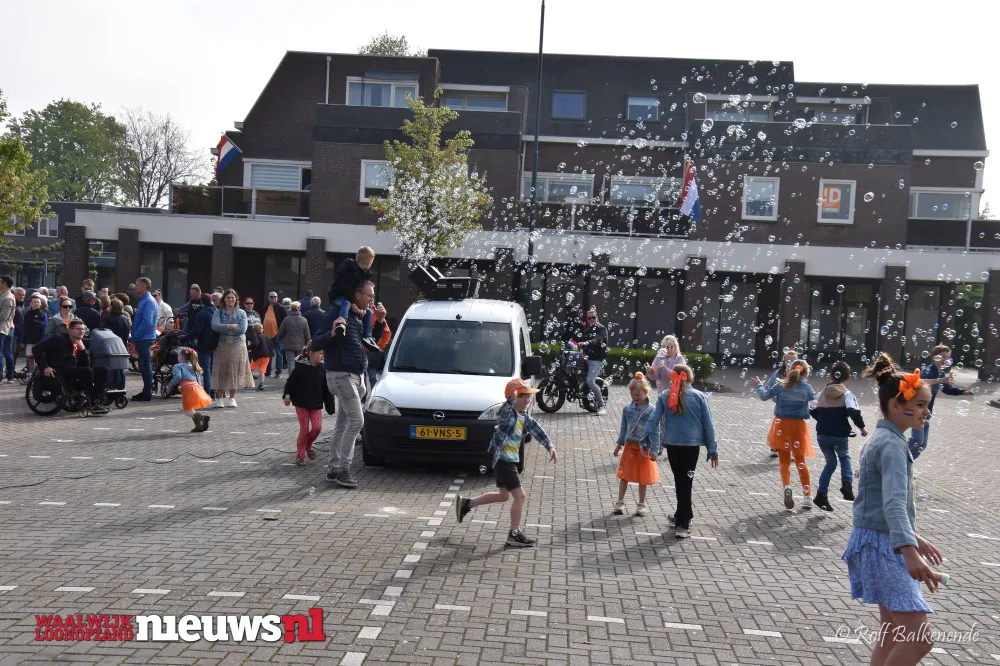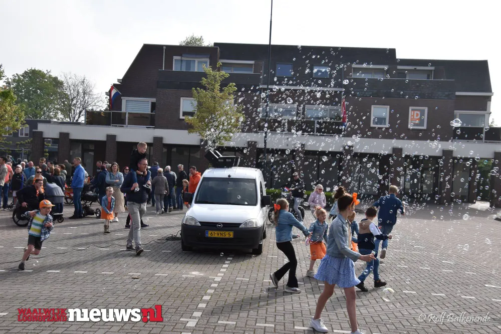 Na de aubade verzamelden de kinderen zich rondom de bellenblaasmachine, waarmee het feestelijke programma voor de jongste bezoekers van start ging.