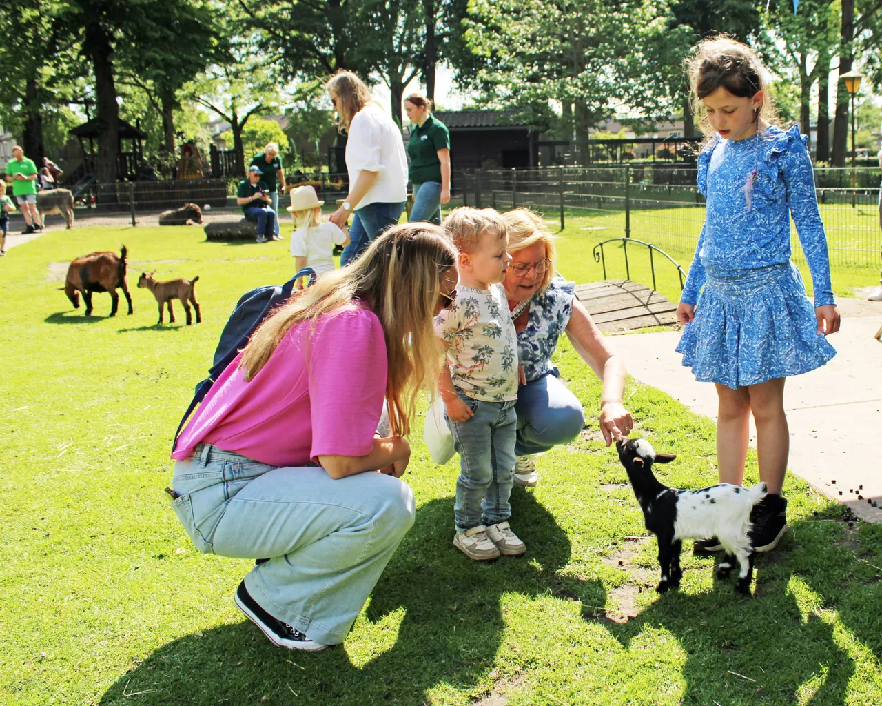 De dieren genoten zichtbaar van alle aandacht en gingen gewillig op de foto. Ondertussen hadden de vrijwilligers het terrein extra feestelijk aangekleed met roze en blauwe vlaggetjes en lampionnen. Ook stonden er schalen vol beschuit met muisjes klaar, waarvan er dit jaar weer honderden doorheen gingen.