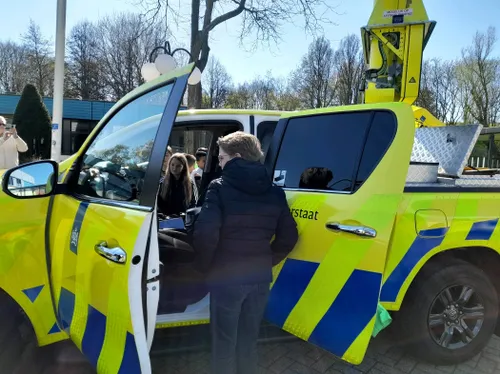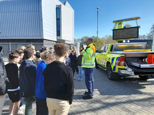 De kinderen kregen ook te horen hoe een weginspecteur te werk gaat bij incidenten. Hugo legde uit hoe hij wordt aangestuurd, hoe hij een ongeval veiligstelt en hulpdiensten inschakelt. Hij zorgt ervoor dat de rijbaan zo snel mogelijk weer wordt vrijgegeven.