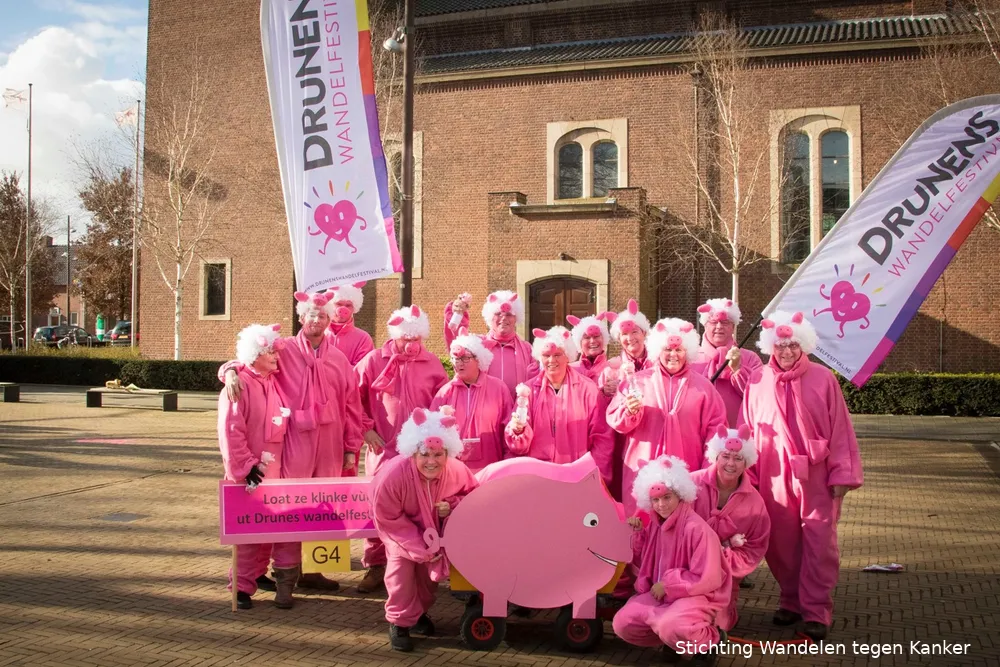 DRUNEN – Tijdens de carnavalsoptocht in Drunen is zondag 11 februari een opvallend grote roze vlek waargenomen. Het bleken de Pink Piggies van ‘Ut Drunes Wandelfestival. De loopgroep vroeg op bijzondere manier aandacht voor het Drunens Wandelfestival voor Pink Ribbon, op zaterdag 23 juni aanstaande.