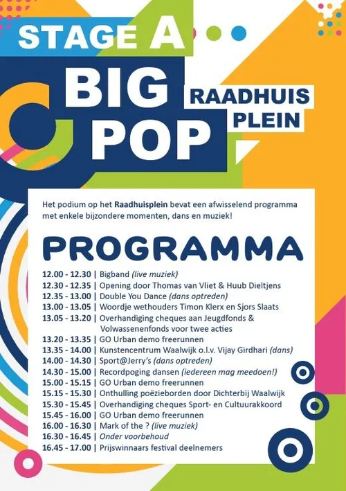 Het GO Waalwijk Festival vindt plaats op zondag 29 september 2024 van 12.00 uur tot 17.00 uur. Het is ook koopzondag. Parkeren is gratis, maar kom vanwege de drukte zoveel mogelijk op de fiets (of te voet).