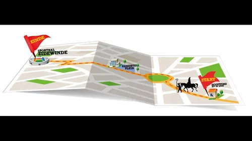 Raadhuisplein en eindigt bij Sporthal Zidewinde in Vrijhoeve. Een swingende