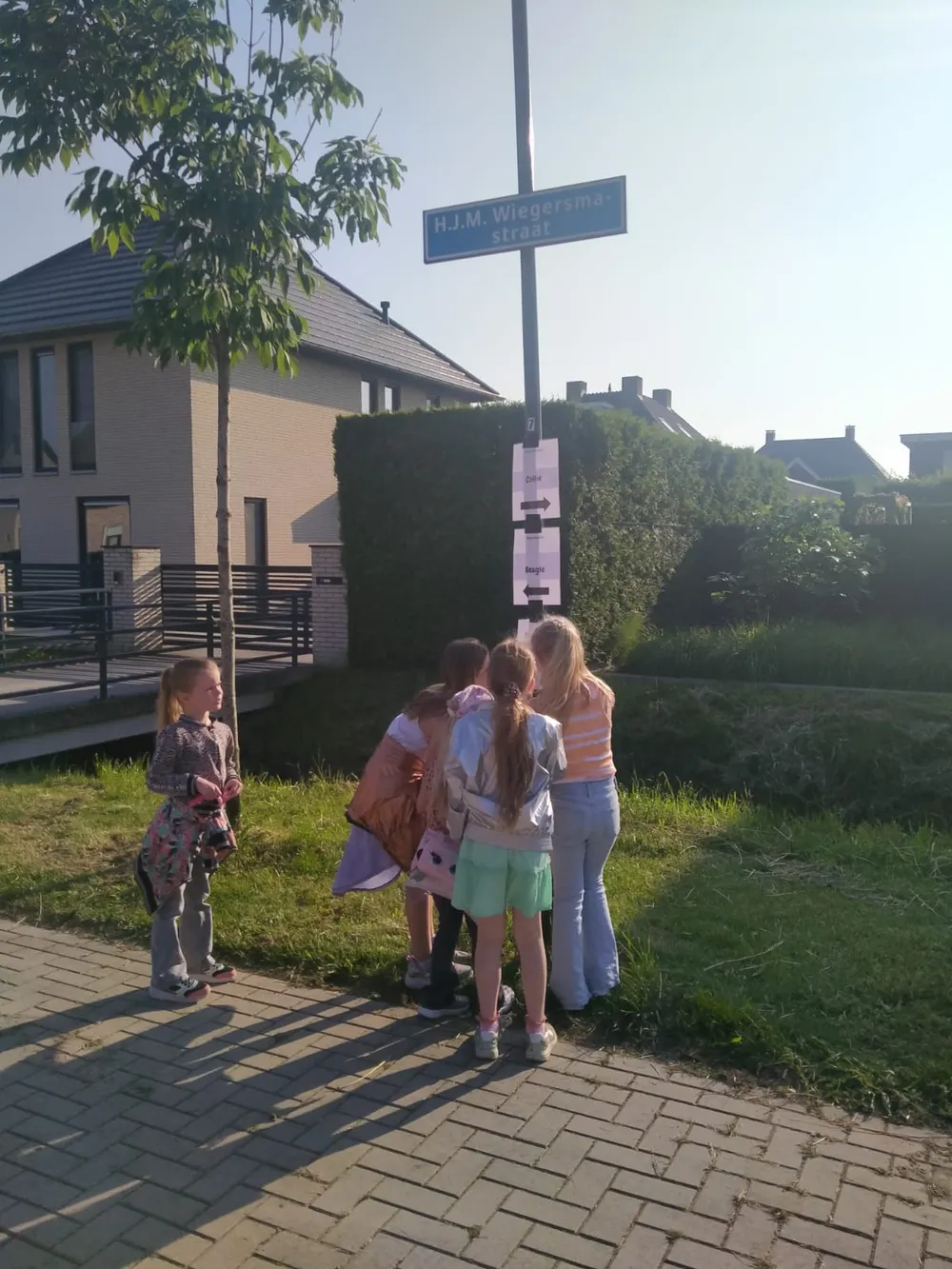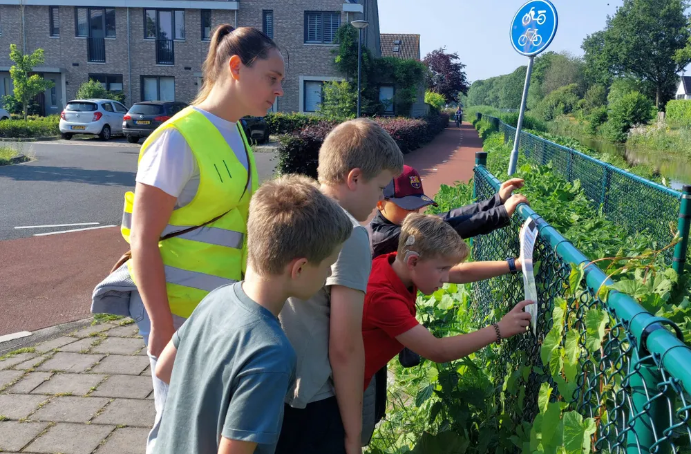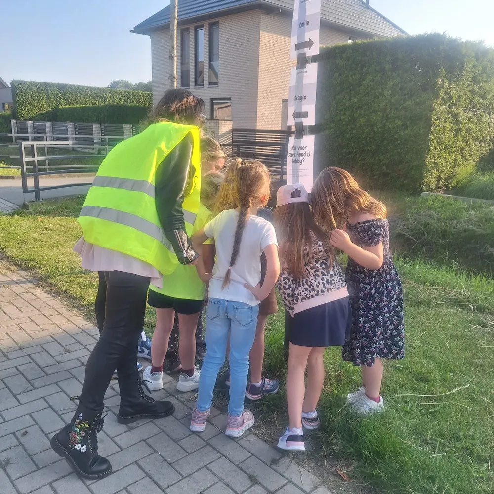 Gewapend met een envelop gingen de leerlingen in kleine groepjes onder begeleiding op zoek naar antwoorden op vragen en de route. Vragen waren her en der in de wijk verspreid. Bij elke vraag moesten ze kiezen uit meerdere antwoorden. Met dat antwoorden belden ze een nummer en kregen dan aanwijzingen voor het vervolg van hun route en de volgende opdracht. Zo puzzelden ze zich een weg naar de oplossing van deze interactieve speurtocht.
