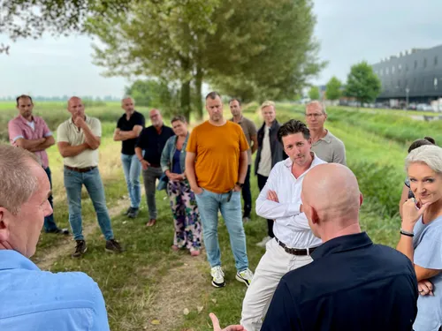 Na de presentatie gingen de deelnemers op een inspirerende wandeling door bedrijvenpark Haven 7, waarbij duurzame voorbeelden werden uitgelicht. Een van de hoogtepunten was een bezoek aan de ecologische zone en de groene gevel van De Haan Group. Het belang van bomen werd opnieuw onderstreept tijdens een regenbui, waarin hun essentiële rol in klimaatadaptatie direct duidelijk werd.
