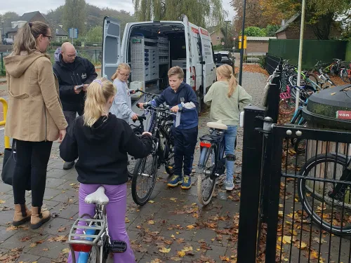 De verkeerscommissie controleert daarnaast in de eerste week alle verlichting en reflectoren op de fietsen van leerlingen in groep 5 tot en met 8. Ouders worden vooraf geïnformeerd over de actie en gevraagd de fietsverlichting van hun kinderen te controleren. Dat deze aanpak werkt, merken we aan het aantal fietsen dat deze week extra controle krijgt bij de lokale fietsenmaker. Het is fijn om te zien dat ouders verkeersveiligheid en zichtbaarheid ook belangrijk vinden!