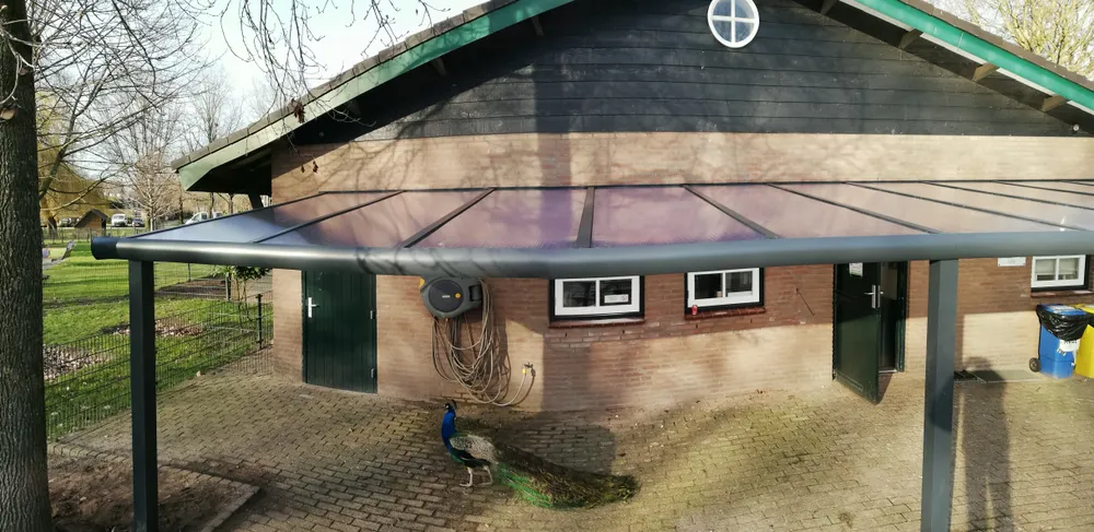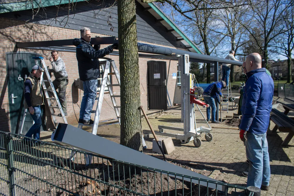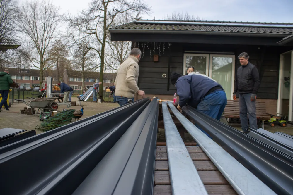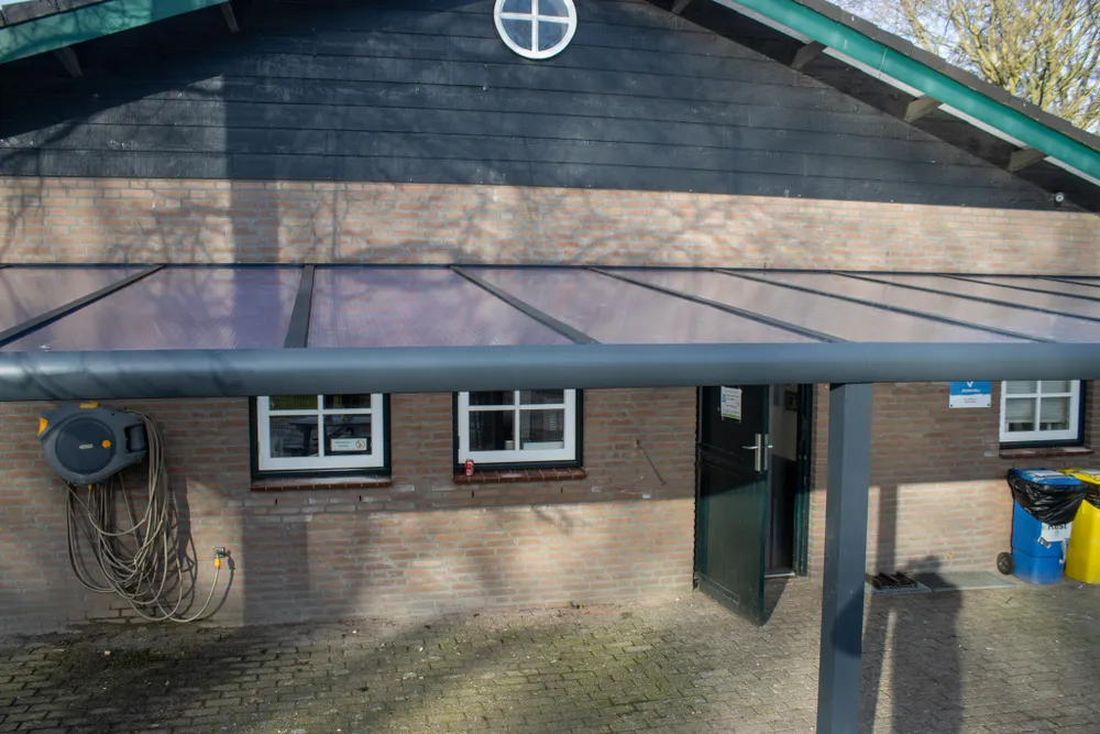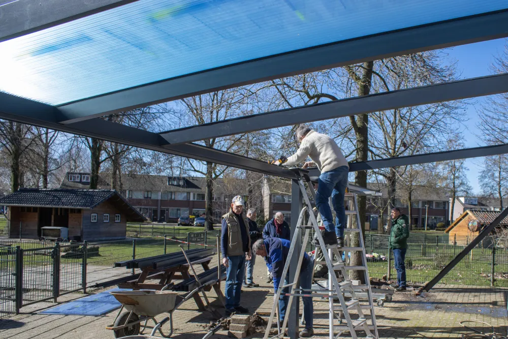 Kinderboerderij 't Erf bedankt iedereen die hier een bijdrage aan heeft geleverd. Mede door de inbreng van alle vrienden is en blijft de kinderboerderij aantrekkelijk voor alle dieren en de vele bezoekers. Ze nodigen je graag uit om de fraaie overkapping te komen bewonderen. Mocht het even wat minder mooi weer zijn, geen probleem. Je staat voortaan zowel in de stal als buiten onder de overkapping droog.