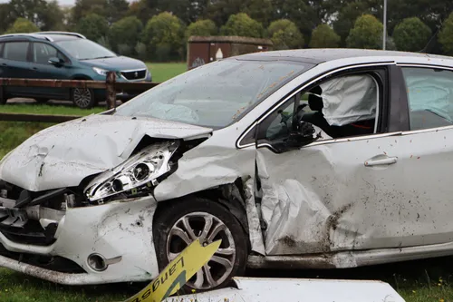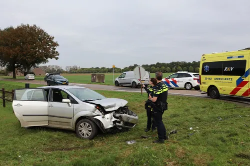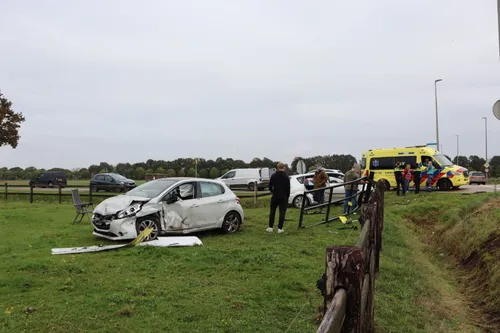 Door de impact kwamen beide voertuigen in een nabijgelegen weiland terecht, waarbij ook een hekwerk en een bord van zuivelboerderij De Kern werden geraakt. Een vrouw raakte gewond en is ter plekke onderzocht door ambulancepersoneel. De kruising staat al langer bekend om eerdere ongevallen. Beide auto's raakten zwaar beschadigd en moesten worden weggesleept. Tijdens de bergingswerkzaamheden werd de Overlaatweg gedeeltelijk afgesloten, waarbij de politie het verkeer in goede banen leidde. De oorzaak van het ongeval is nog niet bekend.