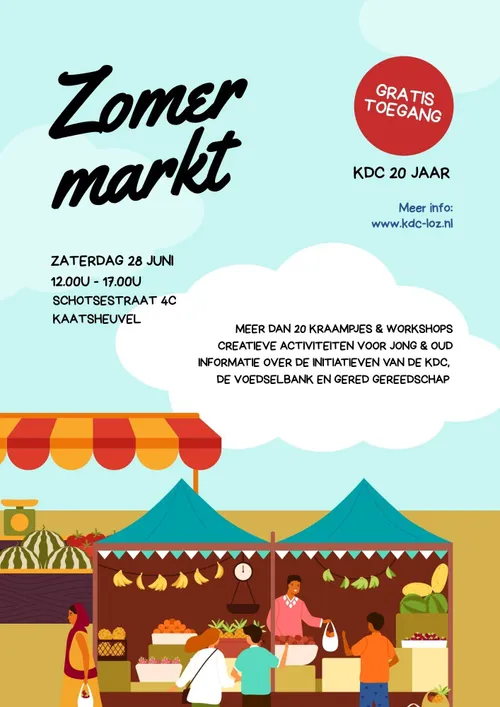 een feestelijke Zomermarkt aan de Schotsestraat 4c. Van 12.00 tot 17.00 uur is