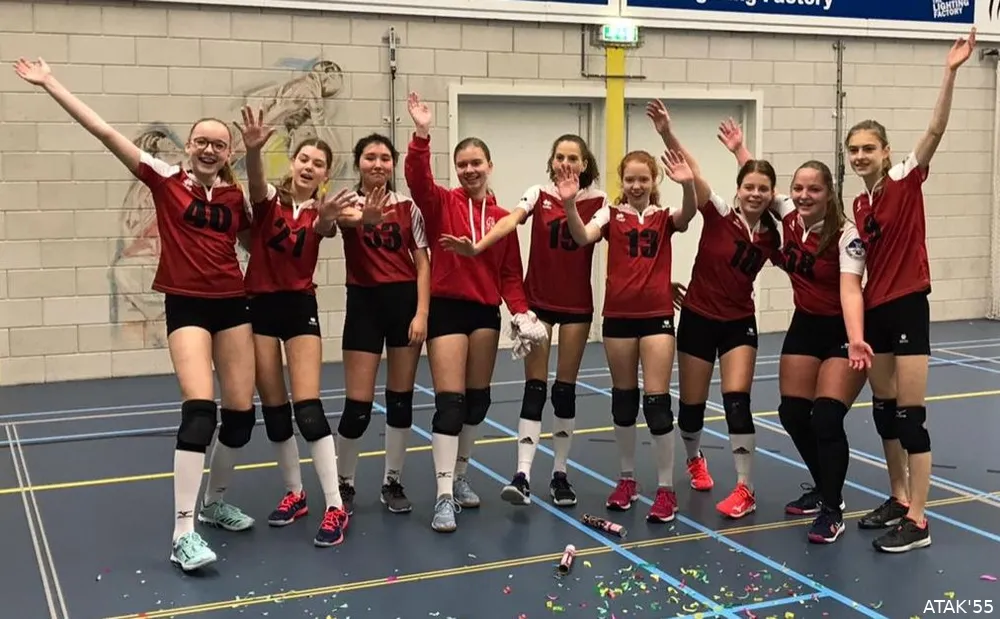 Zaterdag 7 december werden beide B jeugdteams van volleybalvereniging V.C. Atak’55 uit Waspik officieel kampioen in de najaarscompetitie. Met bubbels en confettikanonnen is de winst gevierd. Tezamen met de promotie van het C meisjesteam en de vele Atak thuisoverwinningen brachten de kampioenen het Waspikse sportcentrum de hele dag in opperbeste stemming.