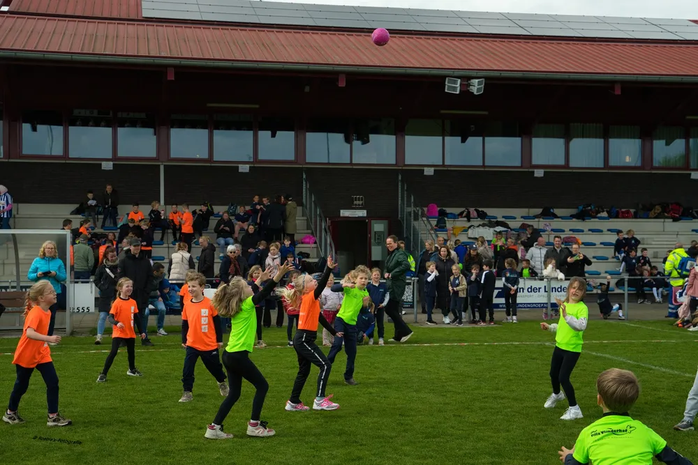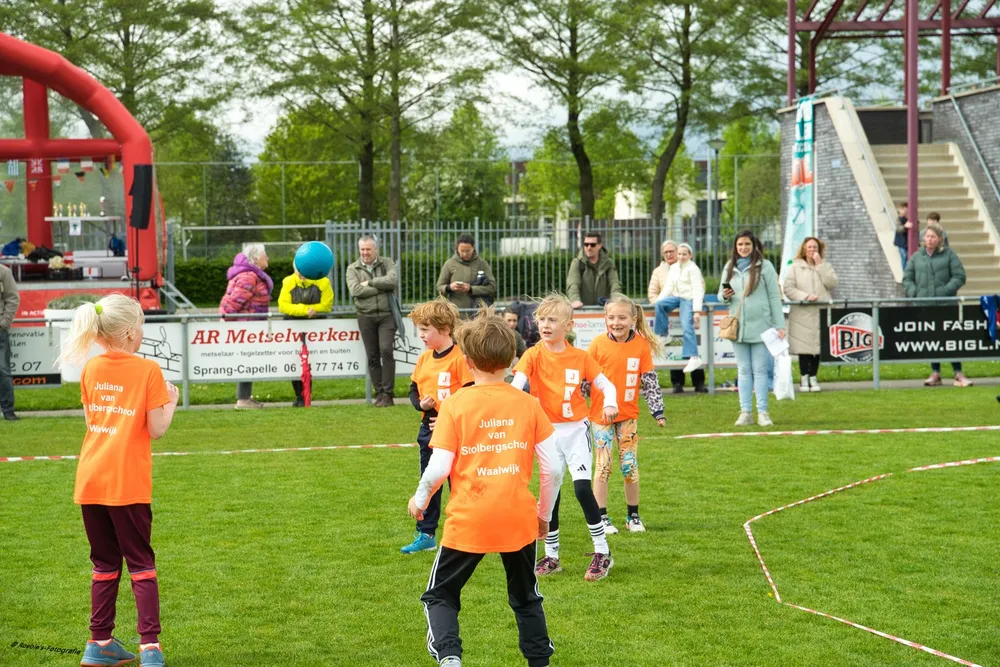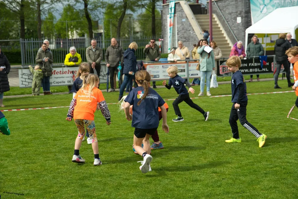Samen met hun klasgenoten streden ongeveer 250 kinderen dapper, fel en met veel plezier om het kampioenschap. 29 teams van verschillende basisscholen uit de gemeente Waalwijk trotseerden kou en, gelukkig niet teveel, regendruppels. De gezellige muziek, fruit, ranja en een zoete traktatie maakten veel goed. Sponsoren, bedankt daarvoor!