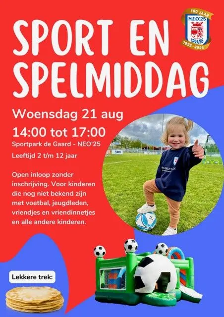 jeugd op woensdag 21 augustus om 14:00 met een sport- en spelmiddag.