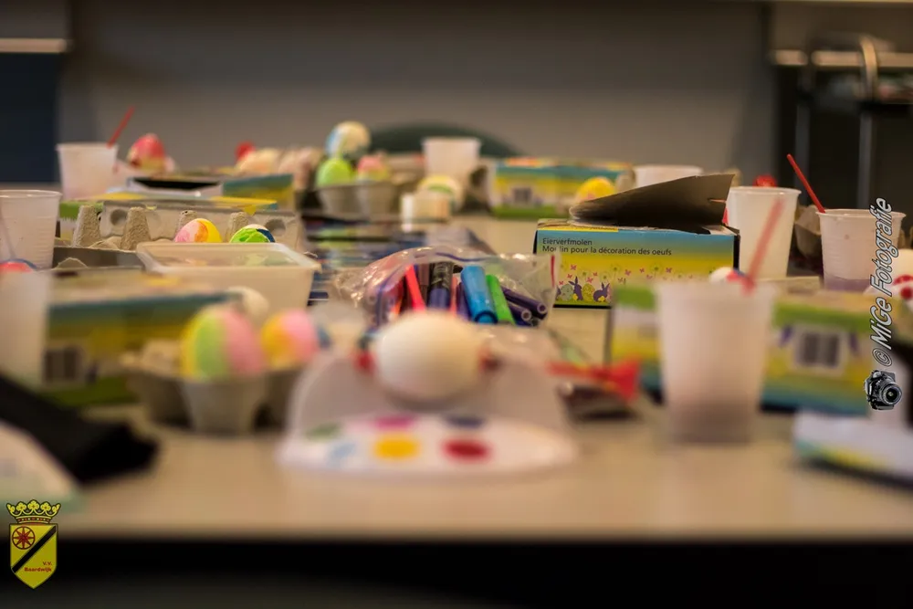 Na een uurtje uitrazen zijn een aantal kinderen naar binnen gegaan om eieren te schilderen, terwijl de anderen nog een partijtje voetbal speelden tegen het mythische dier en zijn team. Het was erg gezellig, maar toen de schemering inviel werd het toch echt wel tijd om de bedjes op te zoeken. De bestuurskamer was omgetoverd tot slaapzaal! Moe maar voldaan konden de kinderen in bed de film 'Pieter Konijn' kijken, natuurlijk ook nog even gezellig kletsen om daarna heerlijk te gaan slapen.