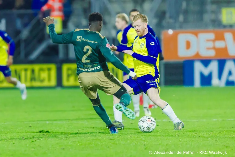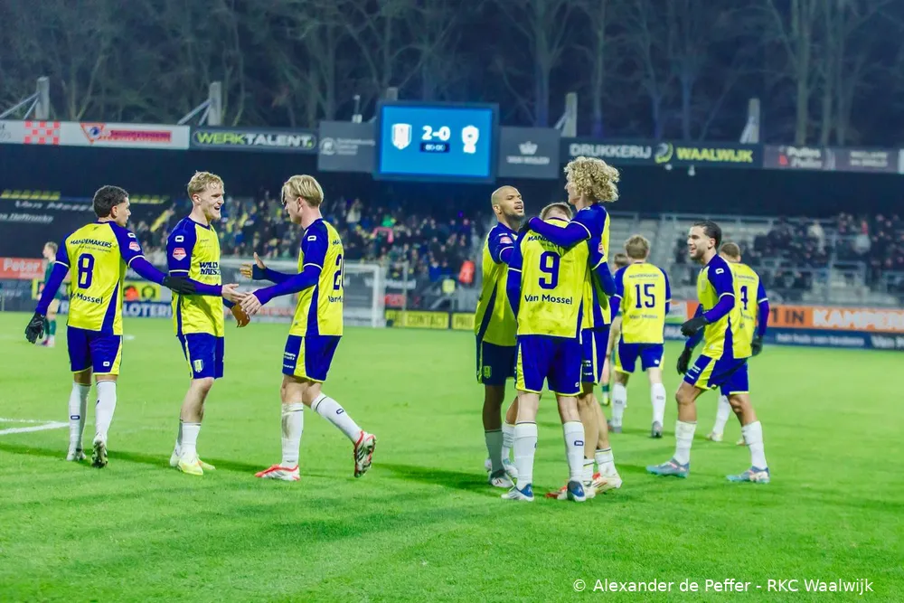 WAALWIJK - Met verzorgd spel, veel dreiging en twee doelpunten speelde RKC Waalwijk zichzelf vrijdagavond naar een 2-0 overwinning tegen TOP Oss. Jesper Uneken en Tim van der Leij maakten de goals in de sfeervolle Brabantse derby.Openingsfase vol kansenRKC Waalwijk begon fel aan de wedstrijd. Al in de tweede minuut werd Daniel van Kaam net buiten het strafschopgebied in de rug geduwd, wat een vrije trap opleverde. Die leverde geen direct gevaar op, maar zorgde wel voor de eerste corner van de avond.