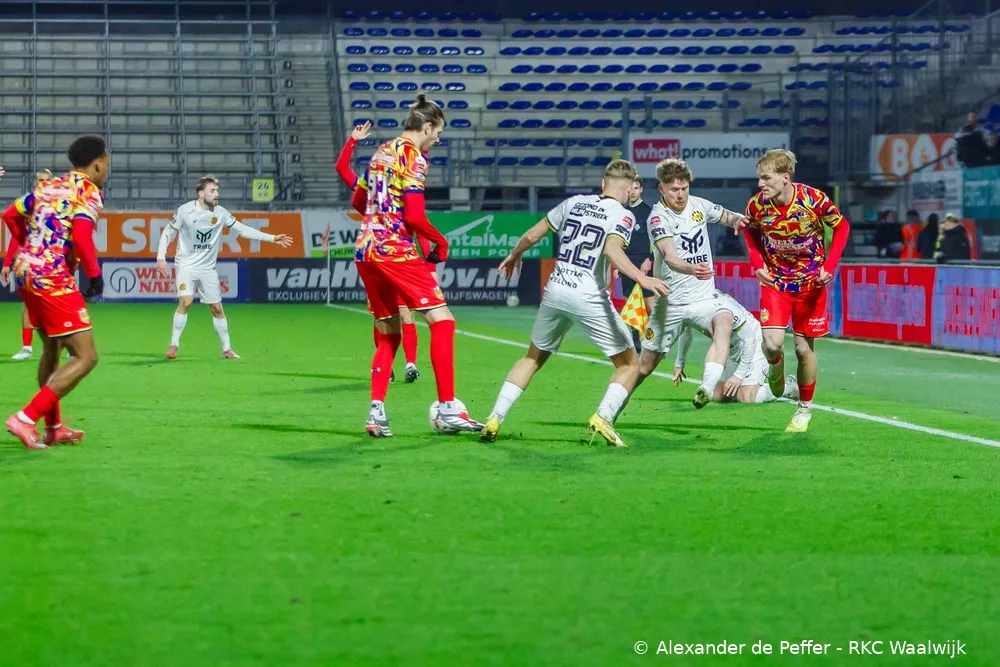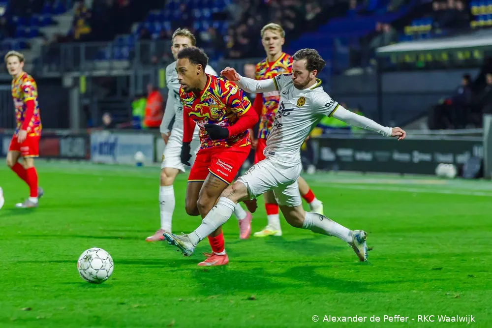 WAALWIJK - Op vrijdag 13 februari nam RKC Waalwijk het in eigen huis op tegen Roda JC in het Mandemakers Stadion. In een wedstrijd waarin grote kansen schaars waren, trok de ploeg uit Kerkrade uiteindelijk met 1-2 aan het langste eind. RKC Waalwijk kende een betere fase na rust en kwam via Jesper Uneken verdiend op gelijke hoogte, maar zag Roda JC in de slotfase opnieuw toeslaan.