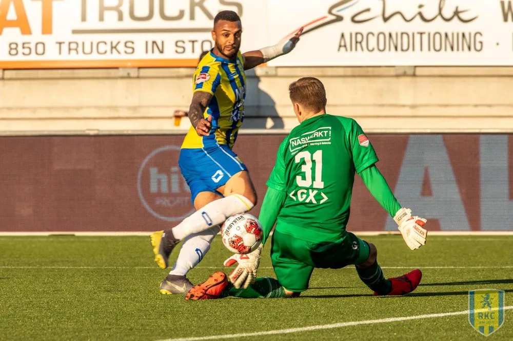 Vijf minuten voor rust wist RKC het duel open te breken. Na een hoge bal van Paul Quasten weet Leroy Labylle de bal niet weg te werken. Seys was alert, haalde hard uit en wist Branderhorst te passeren: 1-0. RKC pakte het initiatief en drukte door. De ploeg van Grim wist bijna de 2-0 voorsprong voor rust te pakken. Een kopbal van Melle Meulensteen kende helaas niet genoeg precisie en zou net naast vliegen. RKC ging hierdoor met een 1-0 voorsprong de rust in.