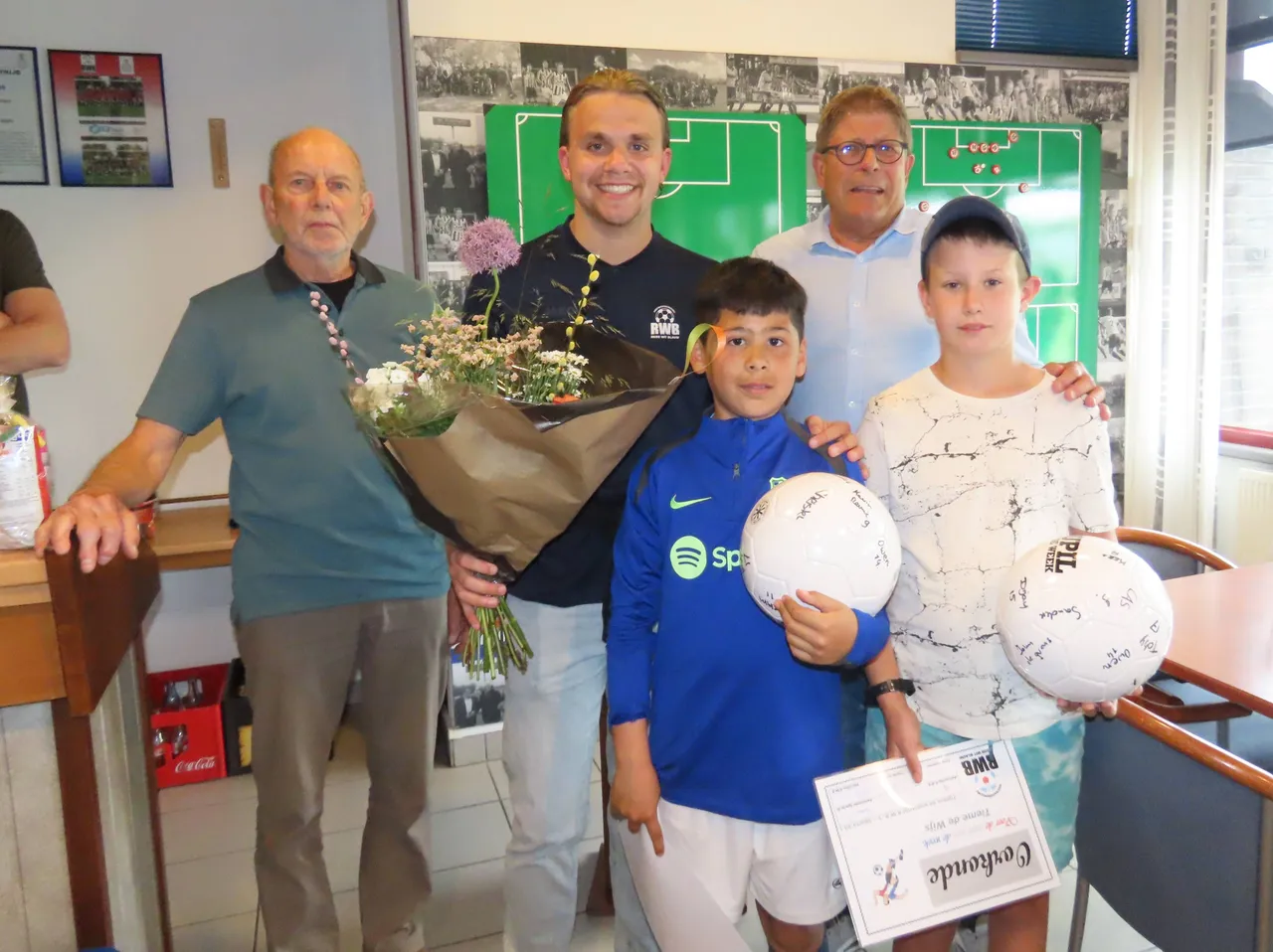 Het bestuur van RWB had ook de vrijwilligers, die zich wekelijks inzetten voor het onderhoud en de netheid van het sportpark, uitgenodigd als VIP-gasten. Zij kregen de eer om te bepalen wie de titel 'Man of the Match' verdiende. De keuze viel op Jonne Clijsen, die de score opende en een sterke wedstrijd speelde. Lau Snels, namens de werkploeg, reikte de door BloemMarlou gesponsorde bos bloemen uit en gaf een korte toelichting op de keuze voor Jonne.