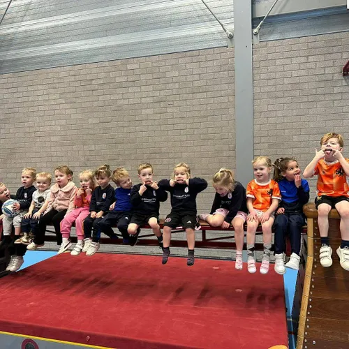Maar liefst 17 teams, verdeeld over verschillende leeftijdscategorieën, namen deel aan het toernooi. In de vroege ochtend was het de beurt aan de jongste talenten van NEO’25: kinderen van 2 tot en met 4 jaar. Deze jonge spelers, die normaal wekelijks onder begeleiding van ten minste één ouder buiten op het gras trainen, kregen nu de gelegenheid om in de zaal te sporten. Oefeningen met de bal, maar ook de klimtoestellen, vielen goed in de smaak. Daarna ging de onderbouw van start, gevolgd door de bovenbouw in de middag.