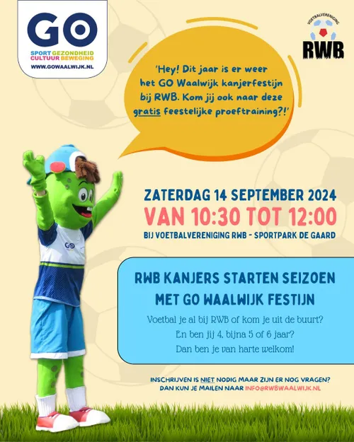 WAALWIJK - Voetbalvereniging RWB is verheugd om te kunnen melden dat op zaterdag 14 september om 10.00 uur samen met Go Waalwijk het startschot gegeven gaat worden voor het 2e Go Waalwijk Kanjer Festijn.